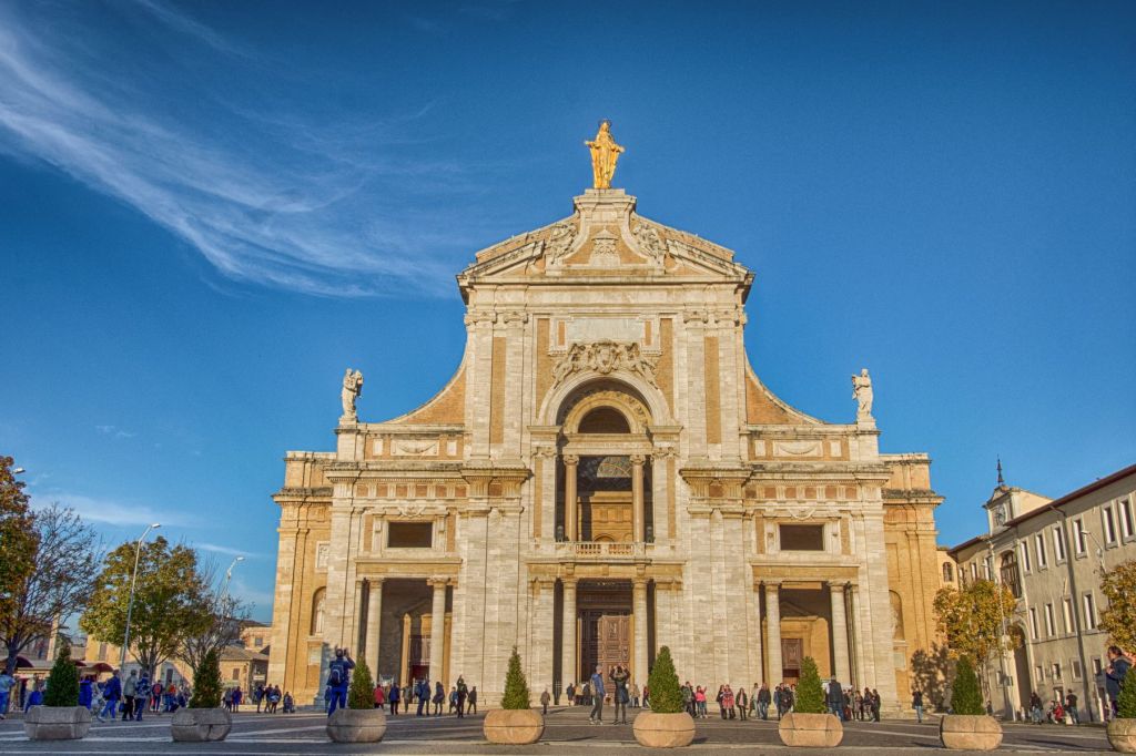 The little church takes its name from “Portiuncula”, which literally indicates the small portion of land on which it stood. This little church was one of the first three to be restored by the Saint who made it the center of Franciscanism. Here he had the vision in which Jesus grants him the Indulgence known as the “Indulgence of the Porziuncola” or “Forgiveness of Assisi”, later approved by the Pope Honorius III.