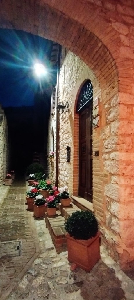 We feared that having visited Spello in the winter, we would have found a village with dull colors, but instead, even with the beginning of the cold weather, Spello continues to be a palette of colors. Every corner is an artistic composition of a thousand colors, expertly mixed, with the bright green of the plant leaves. Every corner is a glimpse to immortalize.