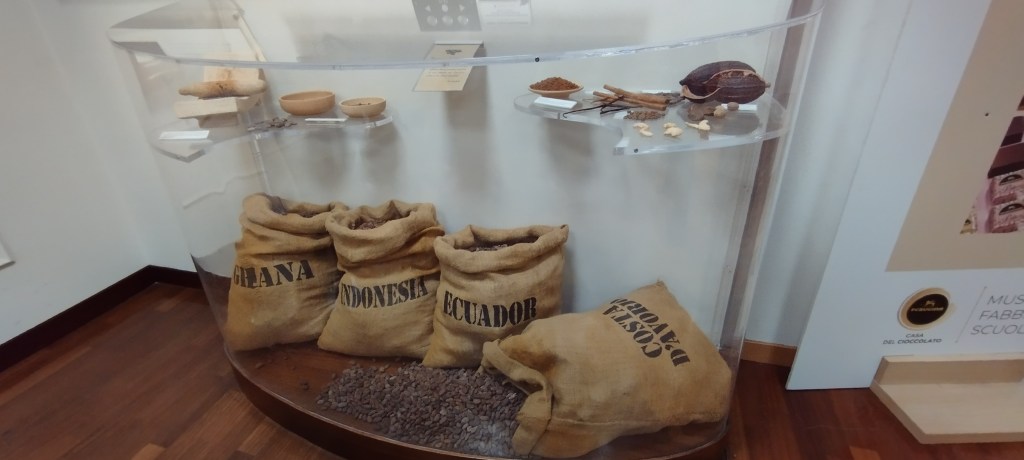 The tour begins as soon as you walk through the front door, where you are greeted by a giant poster that reads: Welcome to Casa del Cioccolato Perugina, A journey from the origins of cocoa to your favorite chocolate.