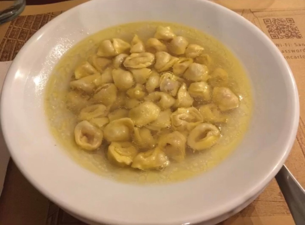 Last but not least, one of the most important dishes are tortellini, which are a fresh pasta filled with pork loin, eggs, mortadella, ham, Parmigiano Reggiano, and nutmeg. If you visit the city during the winter, you have to try the tortellini in brodo, which are eaten in a meat broth ideal for cold weather. You can’t go home without trying them! With sausage sauce, broth, in any way you want them… they are not just great, they are a masterpiece!